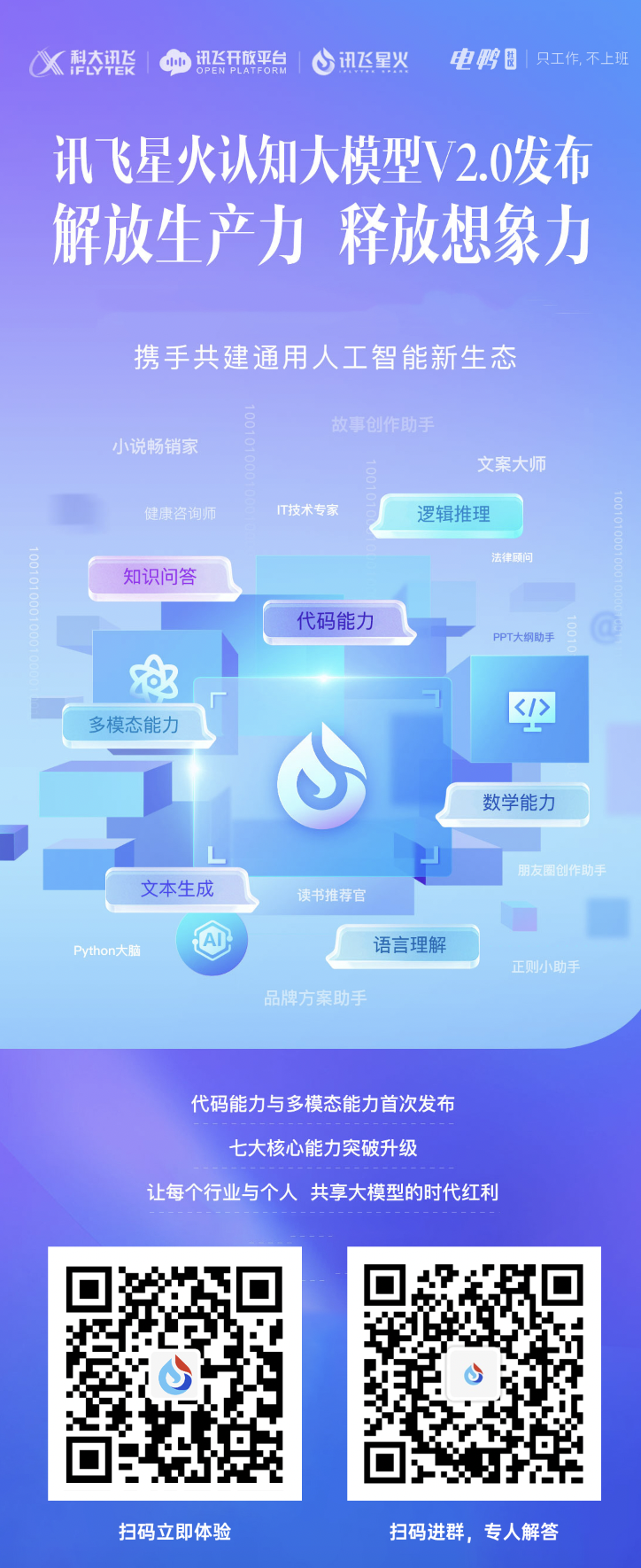 对了,现在科大讯飞星火认知模型通过扫描下方二维码申请,注册秒过。