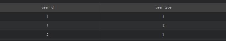 group by user_id, user_type; -- 返回1, 1; 1, 2; 2, 1
