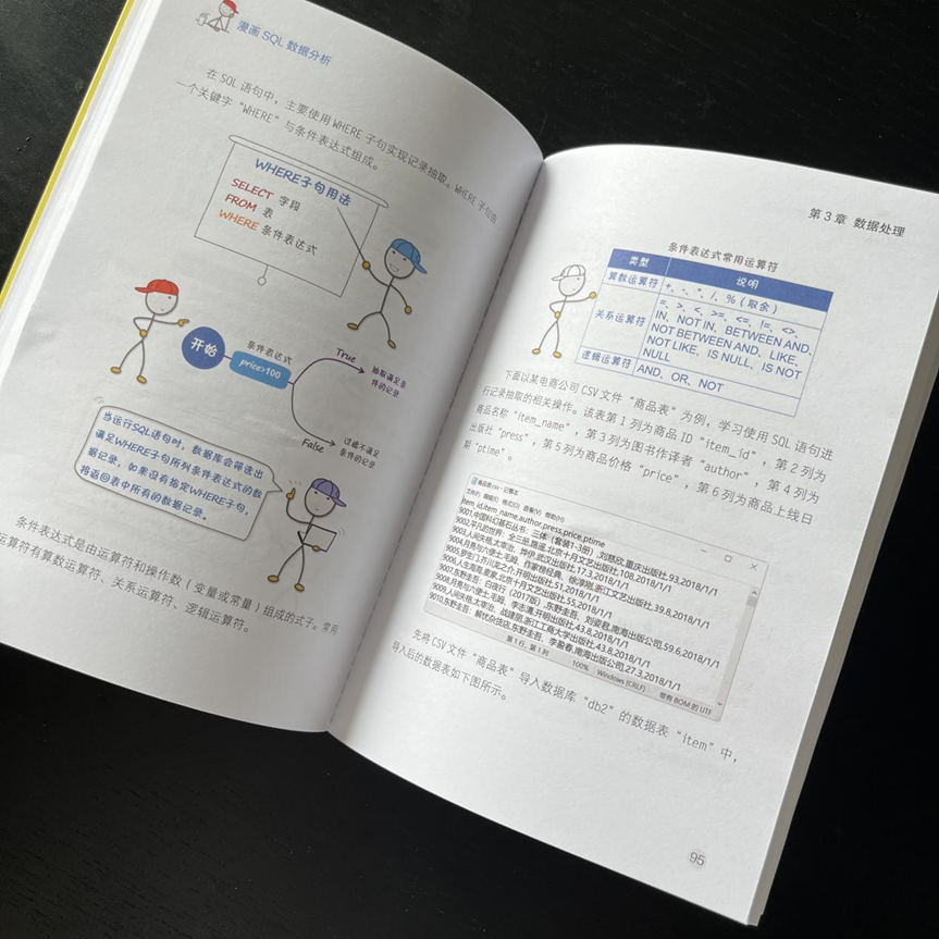 与传统的技术书籍不同,《漫画SQL数据分析》在保持技术性的同时更加注重读者的参与感。每个章节都设有丰富的实例演练,实现零基础上手,通过生动有趣的漫画解说,快速掌握SQL技能。SQL查询、数据过滤、表连接、数据透视以及数据可视化等关键技能,轻松应对各类数据分析任务。无论是编程初学者还是已经有一定经验的人,都能轻松吸收知识。