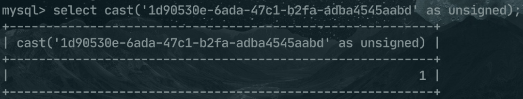 select cast('1d90530e-6ada-47c1-b2fa-adba4545aabd' as unsigned);