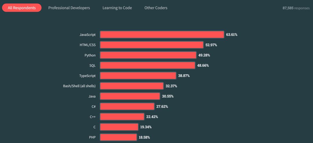 Stackoverflow 问卷的结果是 Javascript、HTML/CSS、Python 是最流行的编程语言。