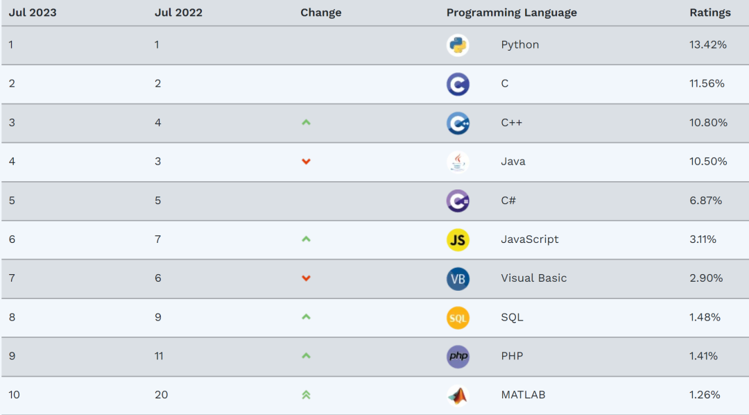 因为从这个结果分析,看似问卷的目标群体是初学编程语言方向的程序员。对比另一个更为权威的编程语言排行榜 TIOBE,其结果如下所示: