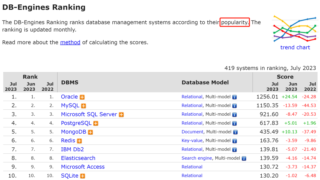 回到数据库的领域,专业人士都知道,更为权威的排行榜是 DB-Engines:
