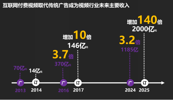 在2017年,因为看到了运营商在用户体验、CDN上的一些努力,所以杨宇做了预测:付费视频这个行业会因为运营商CDN加入产生巨大变化,并预测到2025年,付费视频规模能够超过2000亿。从目前情况来看,已经提前两年超过了2000亿规模,整个中国付费视频的市场,大概是在接近3000亿水平。