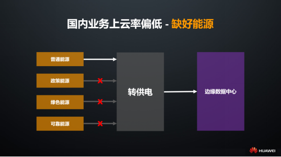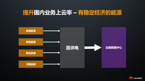 第三步,有稳定经济的能源。华为云跟国网、南网和发改委讨论稳定、经济的能源问题,今后可能也会推动包括华为云在内所有合作伙伴,把瓦特和比特结合起来,把电网、运营商和云厂商有效结合起来,实现很多高质量和低成本的能源,提供给边缘数据中心进行使用。
