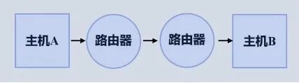 我们看一下下列的网络拓扑的流程图,主机A毋庸质疑就是客户端A,主机B也是最终到达的地方也就是服务器B。重点来聊一下中间的路由器。