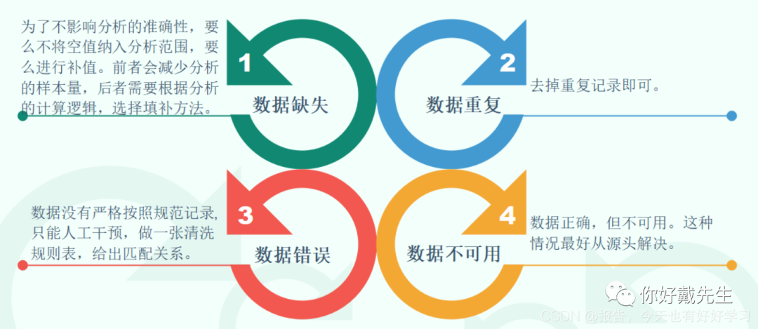 那还有一点呢,就是对数据进行治理。数据治理有广义上的,还有狭义上的。在这里我们只介绍狭义的,也就是从数据分析的角度来介绍一下数据治理如何影响数据质量、影响分析的。