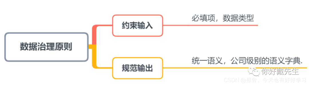 一方面是约束输入,比如必须添加的、数据的类型是什么,也就是规则要统一;另一方面就是规范的输出——统一语义,也就是我们口径、计算方式都一样,然后要有一个公司级别的语义字典。这样我们在用数据的时候就不会出现错误了,在收集数据的时候也不会出现数据不可用了。