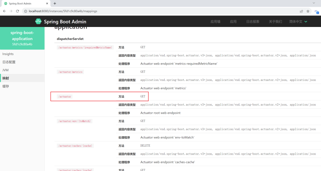 通过查阅监控中的映射指标,可以看到当前系统中可以运行的所有请求路径,其中大部分路径以/actuator开头