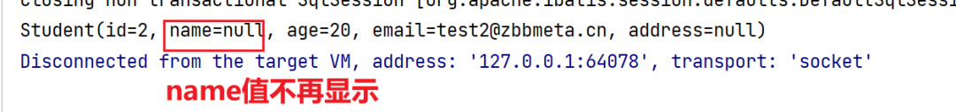 需求:name这个字段不对用户显示值(比如:用户查询时实体类中有密码,我们可以用在查询时不显示密码值)解决方法: