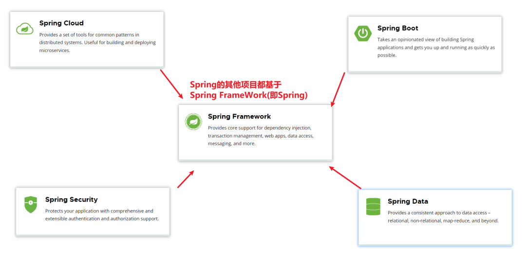 我们在之前介绍Spring的时候,已经说过Spring官方(Spring官方)提供很多开源项目,点击projects,看到spring家族旗下的项目