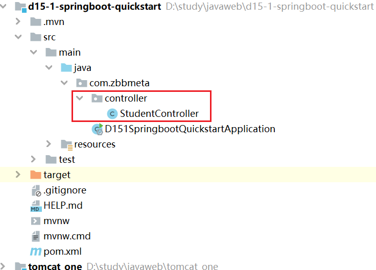 在com.itheima这个包下创建一个子包controller,并创建一个类:StudentController