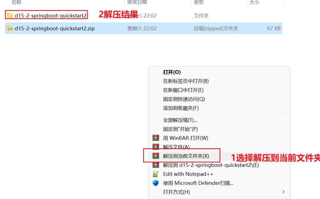 解压缩后,就会得到一个SpringBoot项目工程