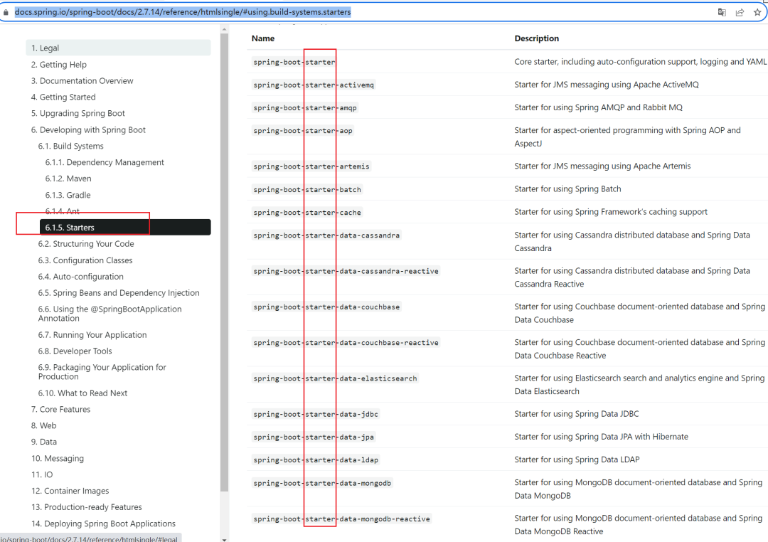 官方地址:https://docs.spring.io/spring-boot/docs/2.7.14/reference/htmlsingle/#using.build-systems.starters
