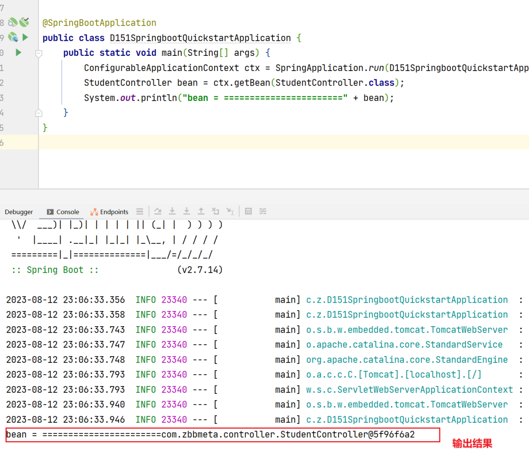 ConfigurableApplicationContext ctx = SpringApplication.run(D151SpringbootQuickstartApplication.class, args);