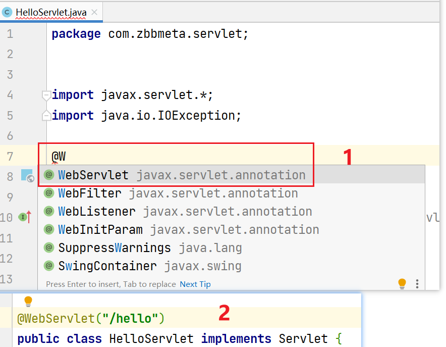 有了MetaHttpServlet这个类,以后我们再编写Servlet类的时候,只需要继承MetaHttpServlet,重写父类中的doGet和doPost方法,就可以用来处理GET和POST请求的业务逻辑。接下来,可以创建Demo2Servlet代码