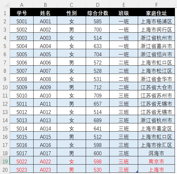 仔细观察,我们可以看出,学生表中的A022、A023对应的学号在成绩表中不存在,成绩表中学号S018、S019在学生表中不存在。