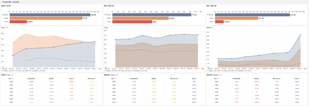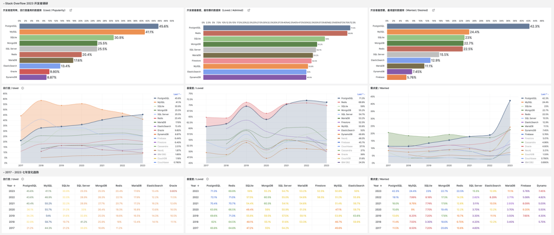 StackOverflow 7年调研数据跟踪: http://demo.pigsty.cc/d/sf-db-survey[39]