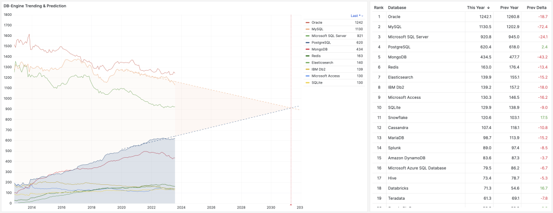 Worked with & want to work: https://survey.stackoverflow.co/2023/?utm_source=so-owned&utm_medium=blog&utm_campaign=dev-survey-results-2023&utm_content=survey-results#worked-with-vs-want-to-work-with-database-worked-want-learn[21]