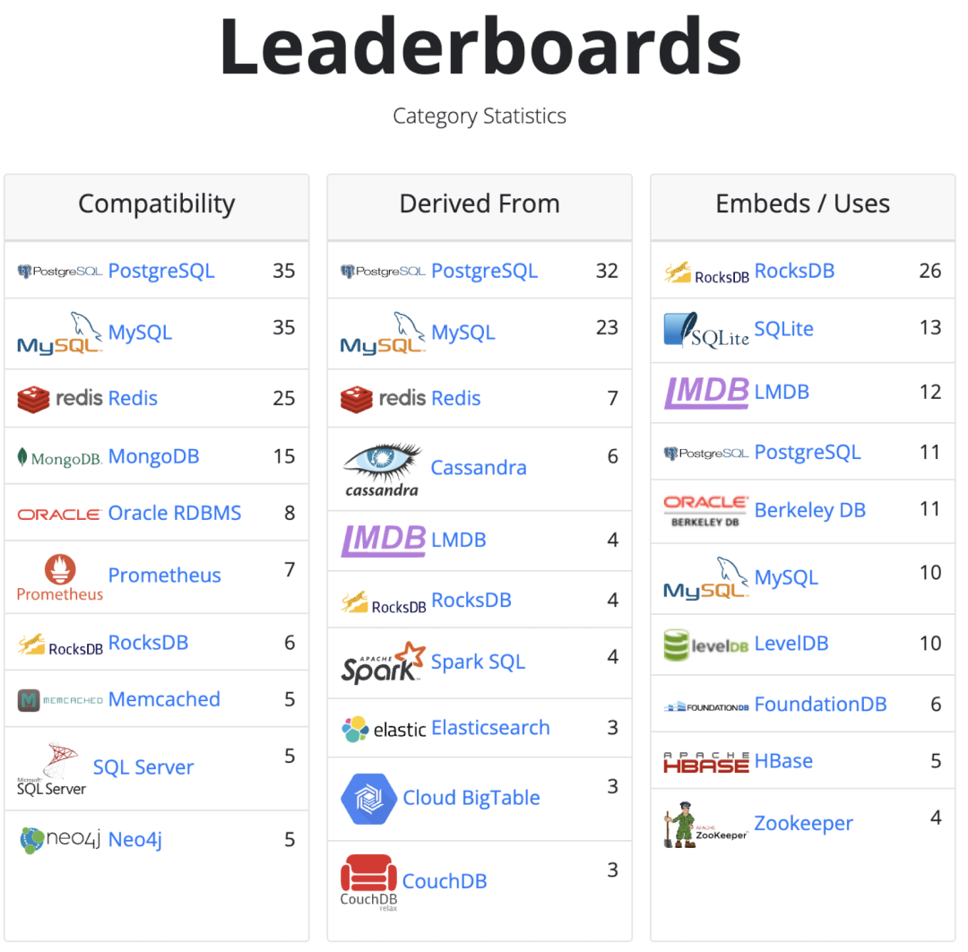 Database of Database 排行榜: https://dbdb.io/stats[27]