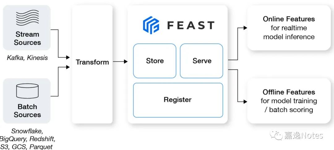 开源版的 Feast,该有的组件都有,麻雀虽小,五脏俱全,相信大部分使用的企业通过一定的拓展能力,是能够在初期满足开发需求的,整体架构简单且容易理解。先说优点: