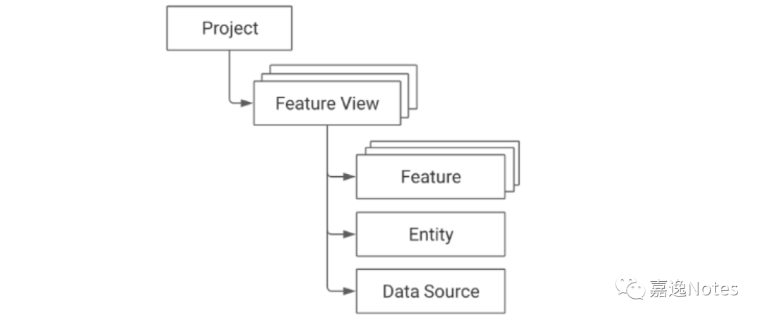 •Feature:一个特征;•Entity:特征主键,关联对应若干个特征,需要关联主键 id;•Data Source:Feature View 对应的数据源;