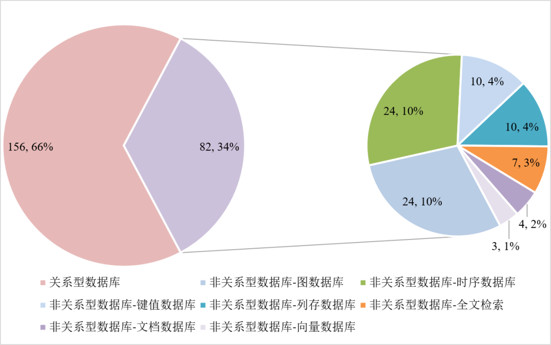3.《数据库发展研究报告(2023年)》:时序数据库53个,在非关系数据库中占比15.4%