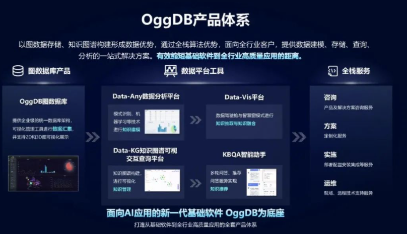 OggDB通过“1+2+2”模式,一站式解决图数据库数据模型、存储方案和查询语言不统一的问题。以openGauss内核为基础的存储方案支持多模数据存储,支持两种主流知识图谱的数据模型,兼容两类主流查询语言,为企业用户提供更易用、更便捷、更高效的数据库服务。