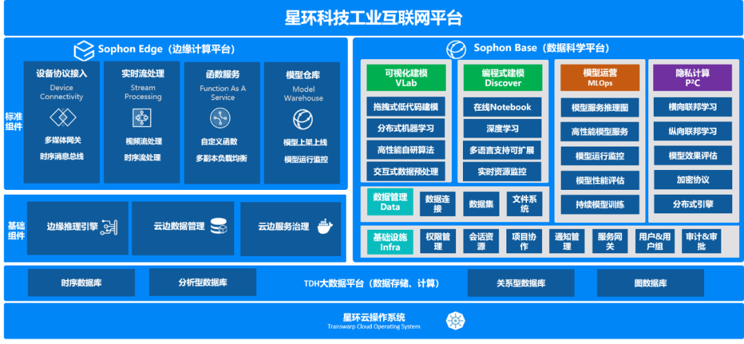 星环科技工业互联网平台由星环云操作系统、大数据基础平台TDH、边缘计算平台Sophon Edge和数据科学平台Sophon Base构成,以AIoT架构为基础,搭起工业生产过程中数据闭环的“桥梁”,实现自感知、自迭代、自决策、自控制的过程,从“经验+流程”到“数据+算法”。