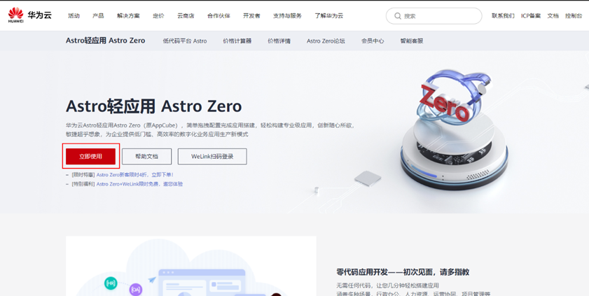 华为云 Astro 轻应用 Astro Zero 是华为云为行业客户、合作伙伴、开发者量身打造的低代码/零代码应用开发平台,提供全场景可视化开发能力和端到端部署能力,可快速搭建行业和大型企业级应用并沉淀复用行业资产,加速行业数字化。