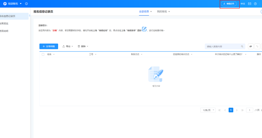 按照页面提示点击右上角的编辑应用——再点击左上角的编辑图标