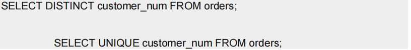 要抑制重复行,可在选择列表的开头包括关键字 DISTINCT 或其同义词 UNIQUE,每个
