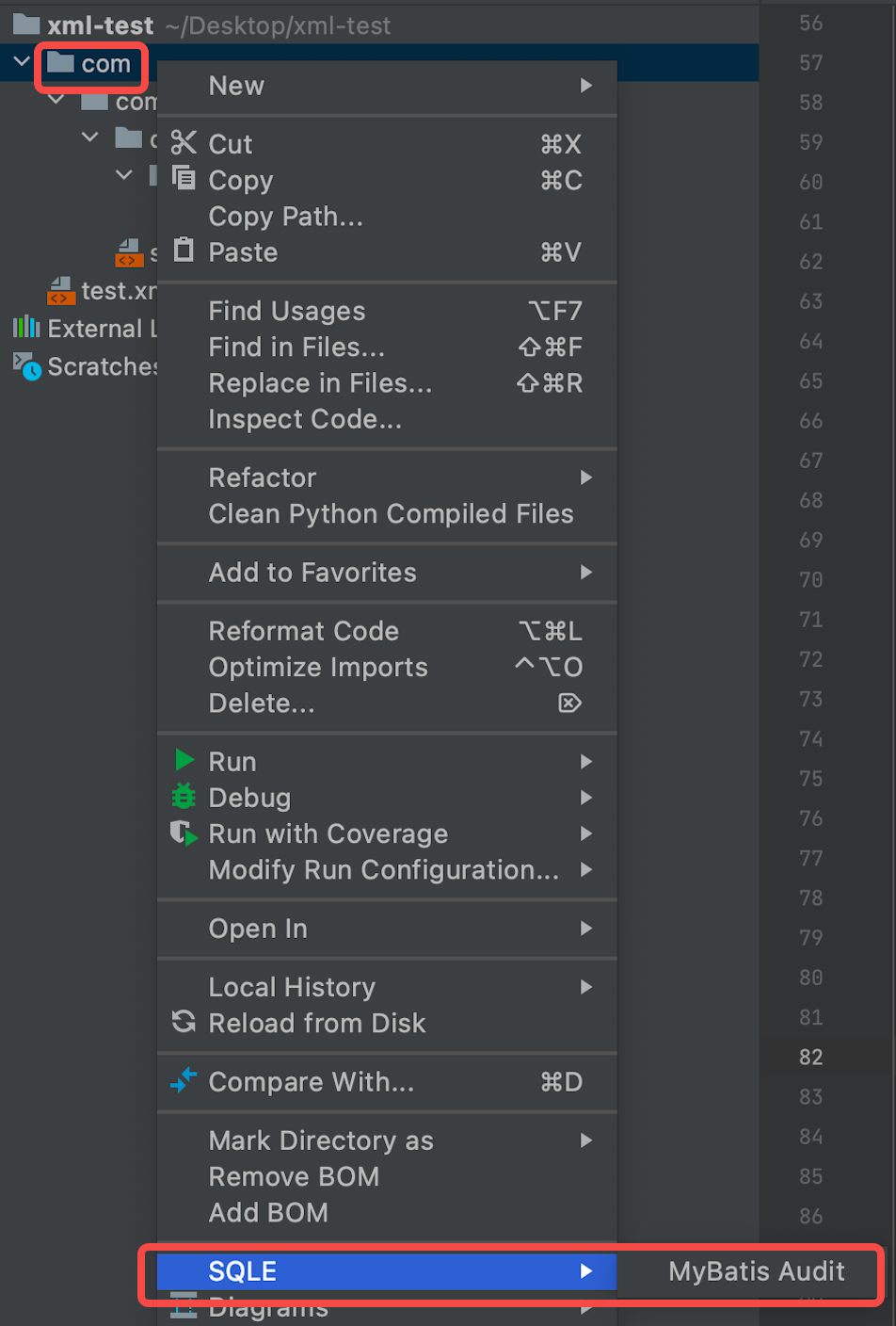 先前提供的审核插件中,审核含有跨命名空间引用的 MyBatis 文件时,会报 ID 不存在的错误。本期改进了 IntelliJ IDEA插件,现在支持一次性审核文件夹下的所有 XML 文件,只要变量的定义和引用都在同一个文件夹下,就能够成功解析。以下是该功能的简单试用: