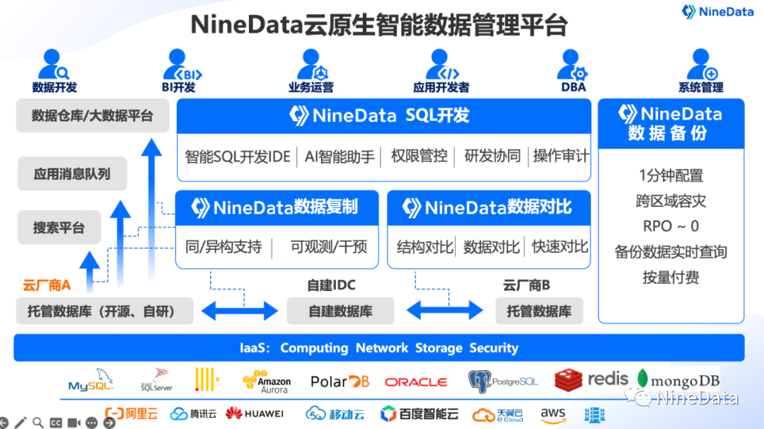 对于客户来说,选择通过FTR认证的NineData作为企业的数据管理工具,意味着可以享受到一个安全、可靠、高效的数据管理服务。NineData 采用了领先的云原生与AIGC技术,提供了SQL开发、数据复制、数据备份、数据对比等数据管理功能,并与企业数据源打通,构建出更智能的数据管理服务。