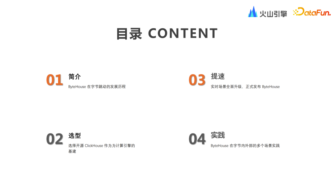 上,来自火山引擎DataTester、EMR、BitSail、ByteHouse的四位专家,分别就