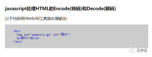 //2.然后将要转换的字符串设置为这个元素的innerText(ie支持)或者textContent(火狐,google支持)