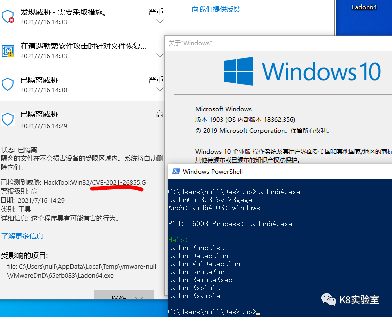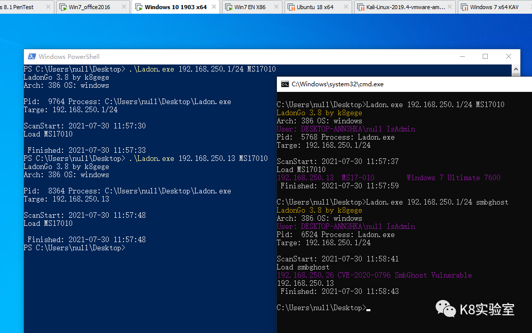 注释MS17010后发现,提示杀CVE-2021-26855,所以它也注释掉,注释后再丢进去发现可以正常执行Ladon了
