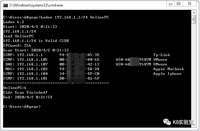 再重复一次,Ladon的OnlinePC不只是单纯的通过ICMP检测存活主机。