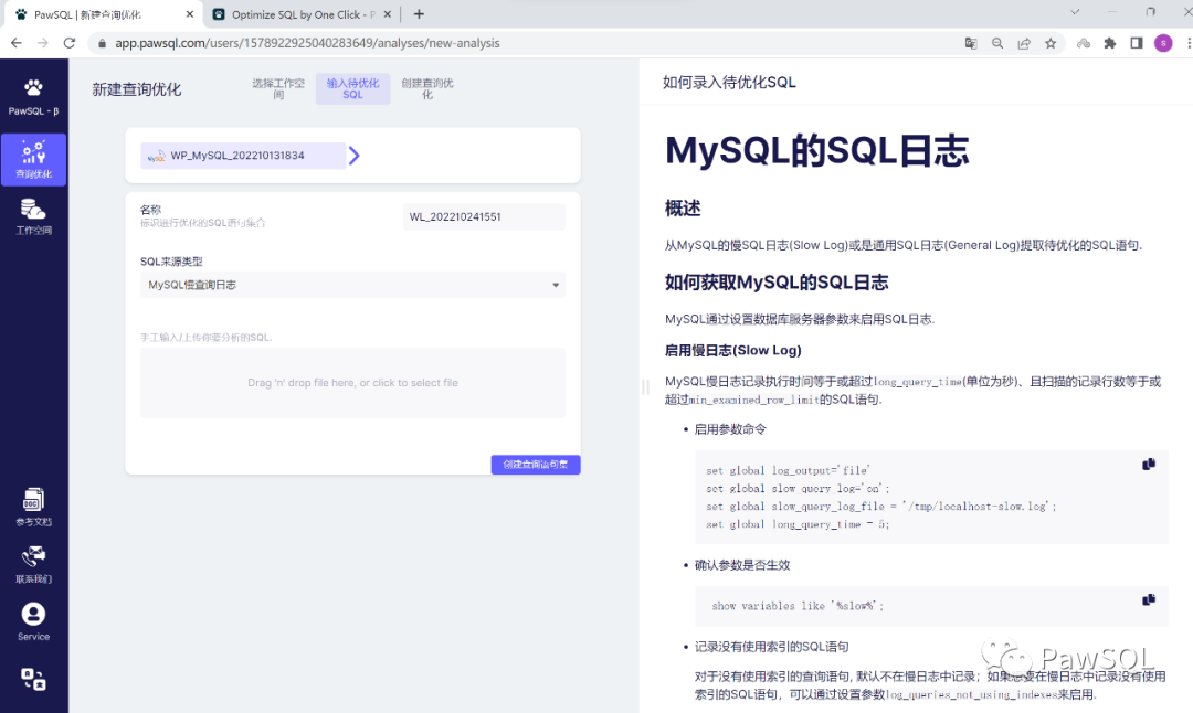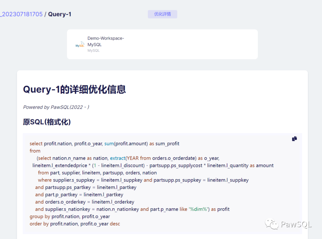 提示: 同样的,您可以看到PawSQL提供了在线指南帮您获取待优化的SQL。