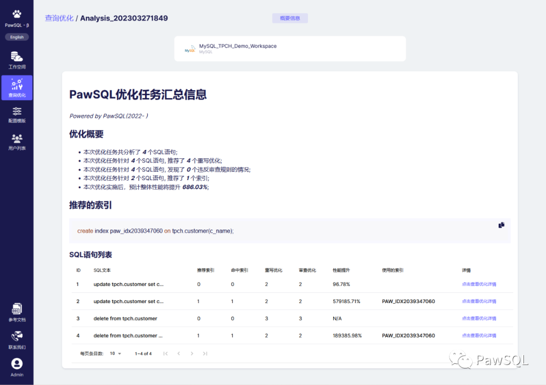 PawSQL Cloud,在线自动化SQL优化工具,支持SQL审查,智能查询重写、基于代价的索引推荐,适用于数据库管理员及数据应用开发人员,