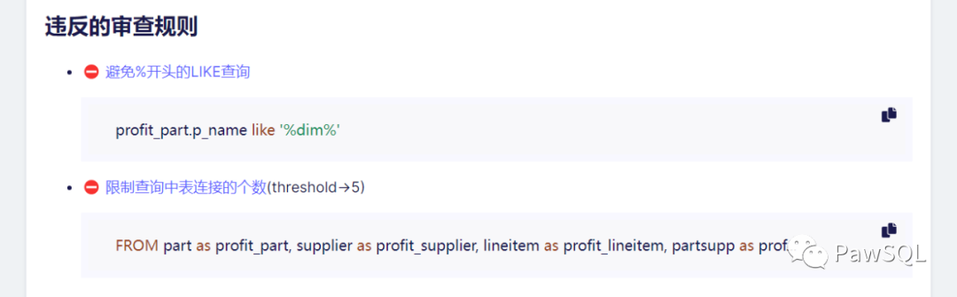 基于规则的SQL审查,包括正确性审查和性能优化审查规则。