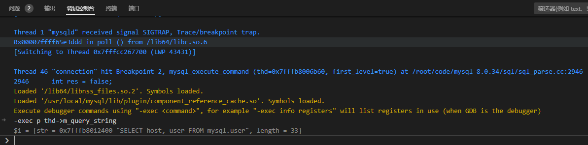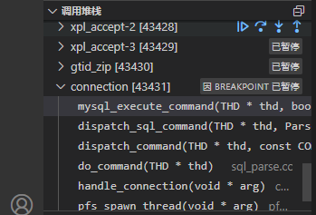 连接 MySQL 成功之后,在 MySQL 源码中打个断点,先打开 sql/sql_parse.cc