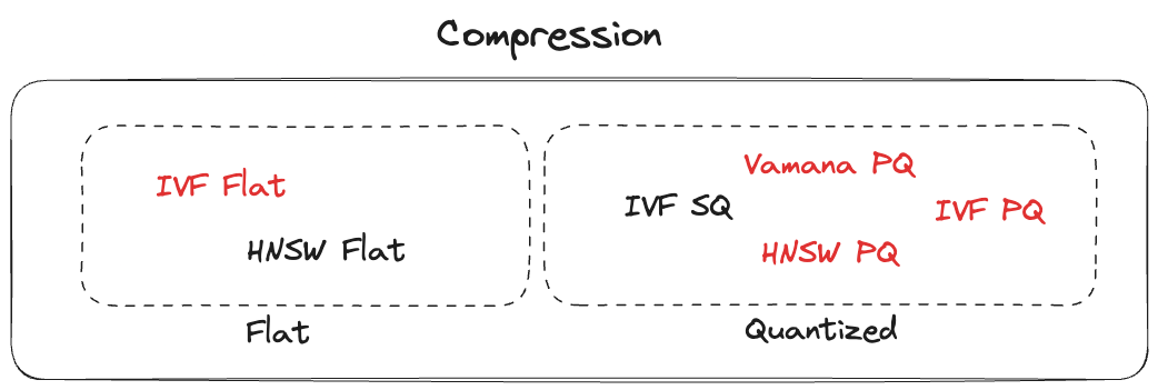 为了提高搜索效率,以牺牲一定的检索准确性为代价,可以采用压缩的解决方案。这个过程被称为量化(quantization),其中索引中的底层向量被分解成由较少字节组成的块(通常通过将浮点数转换为整数)以减少内存消耗和搜索过程中的计算成本。