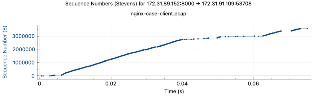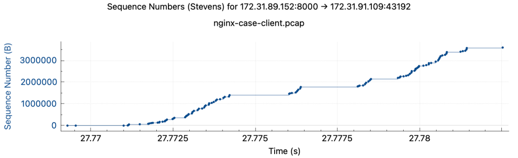 最初复现的场景是所有的instance都是t2.micro,但开2个慢连接进程时比较难复现,开4个进程又太容易触发限流,所以开始考虑用大一些又没那么容易限流的instance型号。考虑到aws是通过间歇掉包来限速的,慢连接进程数量并非越大越好,引发限速后反而会造成网络连接不畅,造成慢连接卡顿,使得快连接卡顿反而不容易观测。最后选择将慢连接全链路改成t3.micro,结果好复现多了。