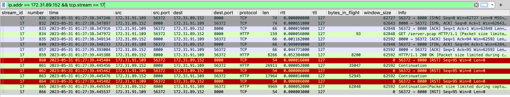 172.31.91.109 [31/May/2023:08:27:50 +0000] "GET server.pcap HTTP/1.1" status=200 body_bytes_sent=3602590 rt=0.058 uct="0.000" uht="0.002" urt="0.053"