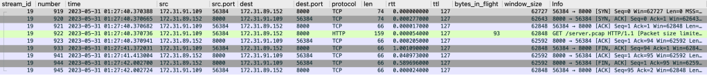 172.31.91.109 [31/May/2023:08:27:52 +0000] "GET server.pcap HTTP/1.1" status=200 body_bytes_sent=102195 rt=0.767 uct="0.480" uht="0.768" urt="0.768"