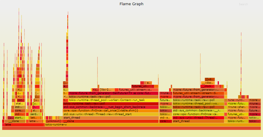 调查 当遇到性能问题时,最常见的调查方法是使用性能分析器运行代码。在Rust中,使用cargo flamegraph可以很容易生成火焰图。让我们比较在使用1个线程和12个线程运行基准测试时收集到的火焰图: