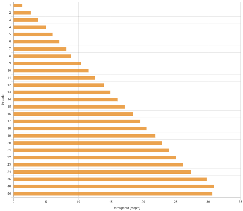 最终结果 现在,吞吐量按预期线性增加,直到24个线程: