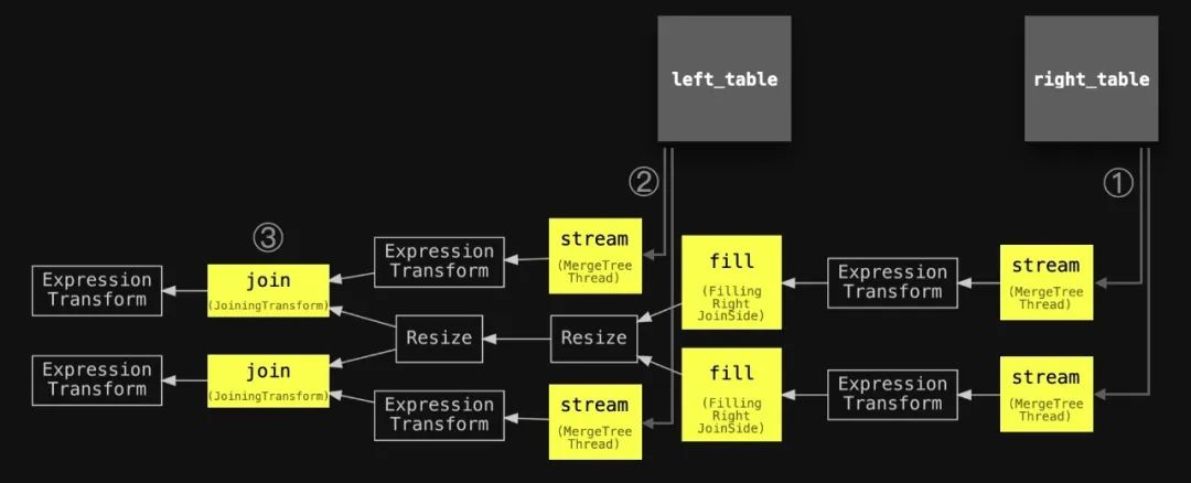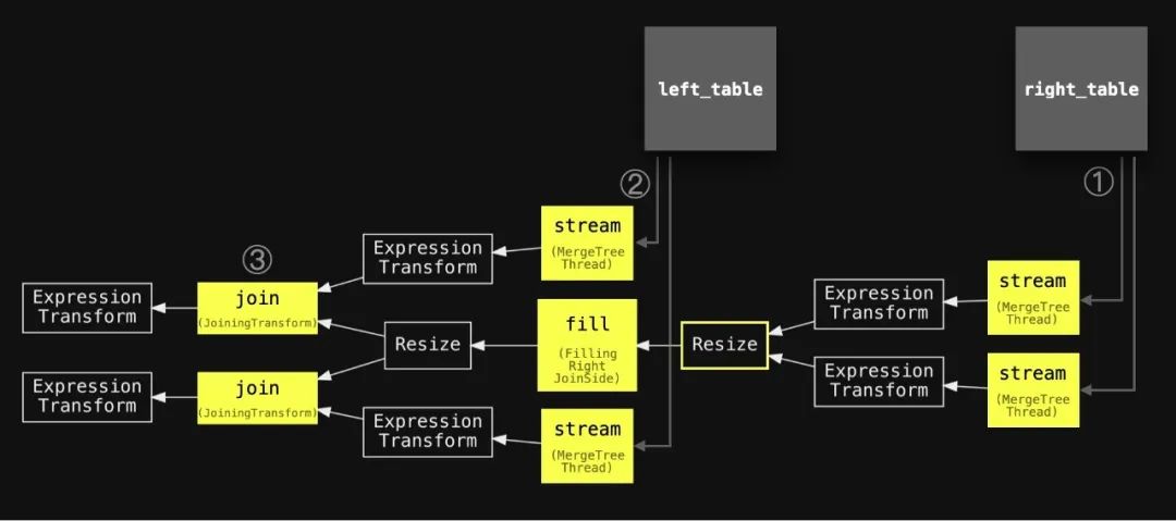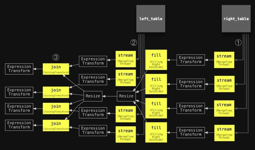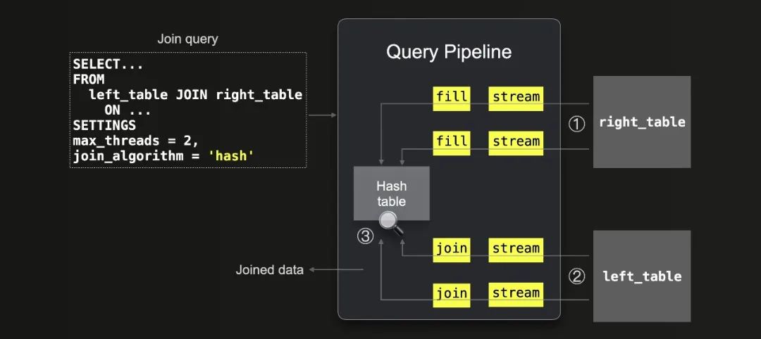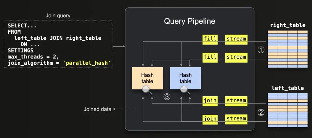 SELECT *FROM actors AS aJOIN roles AS r ON a.id = r.actor_idFORMAT `Null`SETTINGS join_algorithm = 'parallel_hash';0 rows in set. Elapsed: 2.639 sec. Processed 101.00 million rows, 3.67 GB (38.28 million rows/s., 1.39 GB/s.)