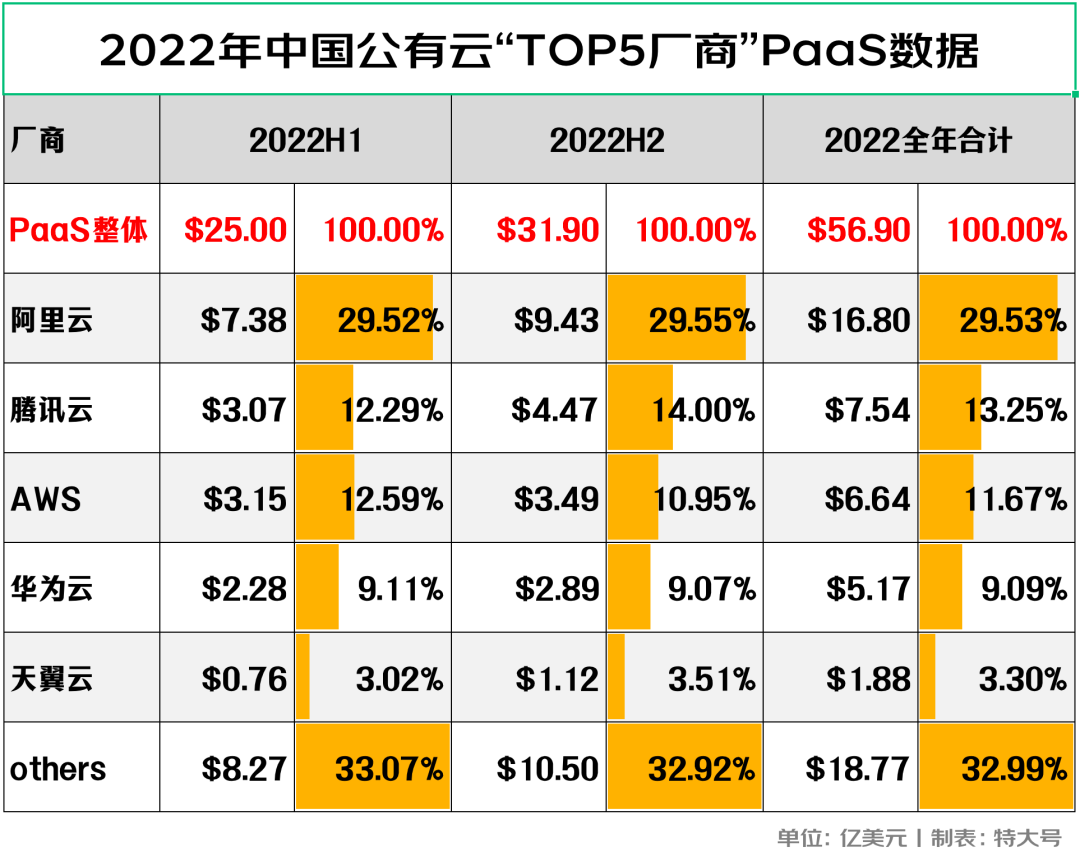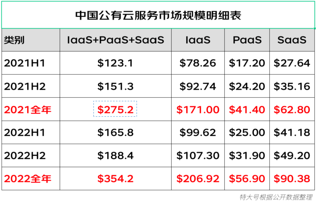 2022H2中国公有云服务市场数据
